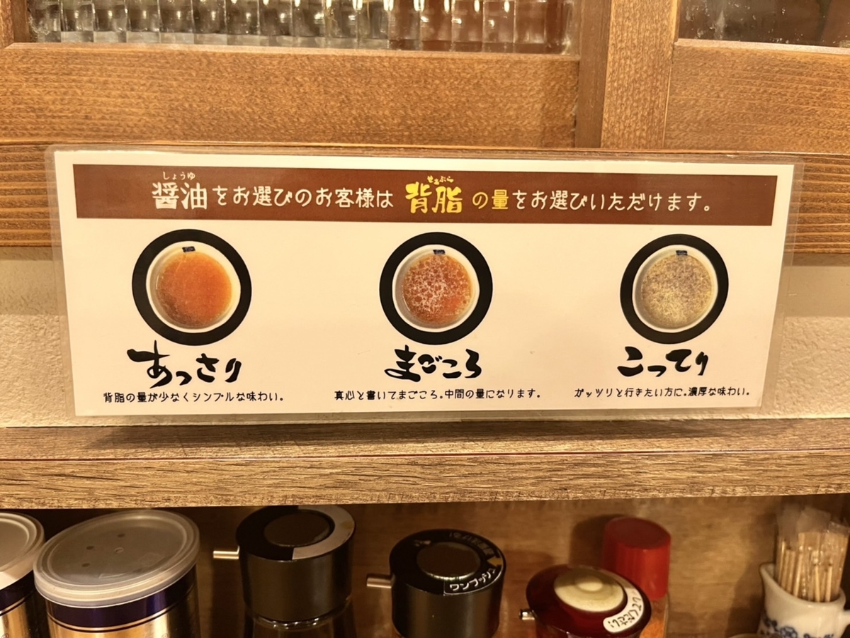 背脂の量が三種類から選べたのですが、初めてなのでベーシックな「まごころ」にしておきました。