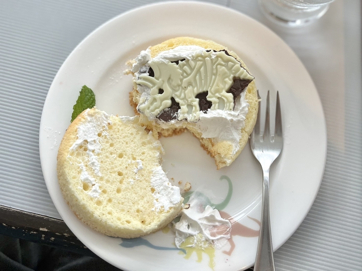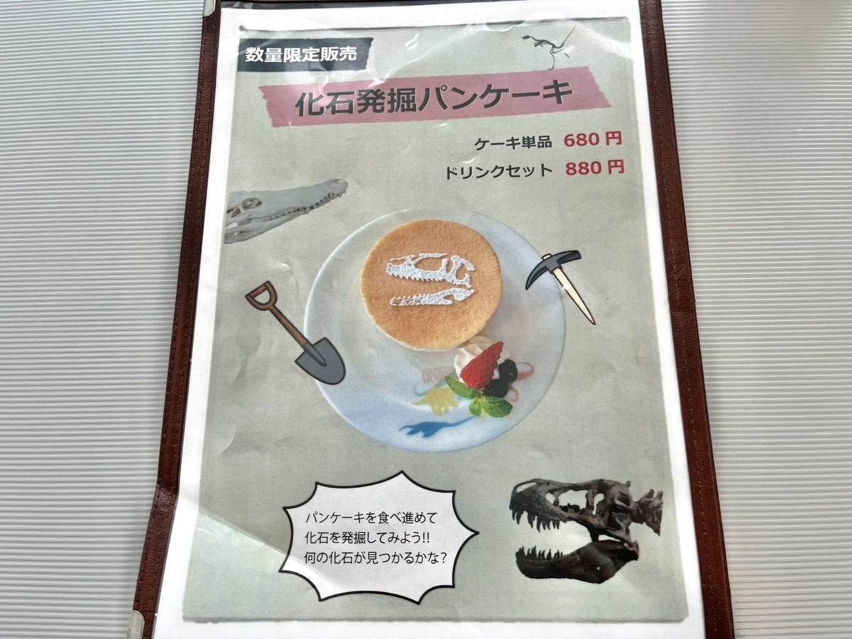 パンケーキの方は普通に食べていて、途中で中に化石があることを思い出したので、食べかけになっています。