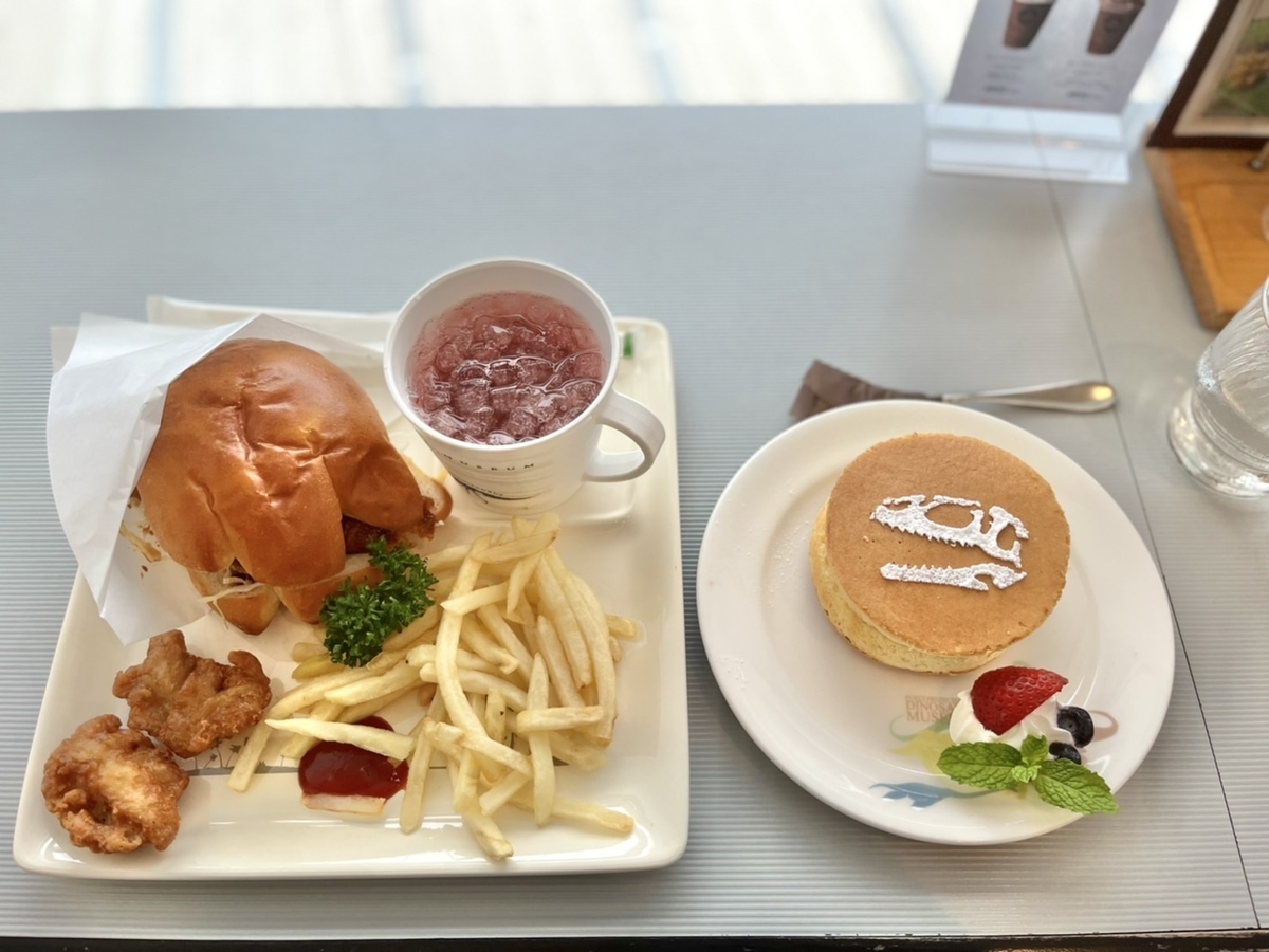 パンケーキに加えて、メインメニューは「恐竜バーガーセット」にしました。