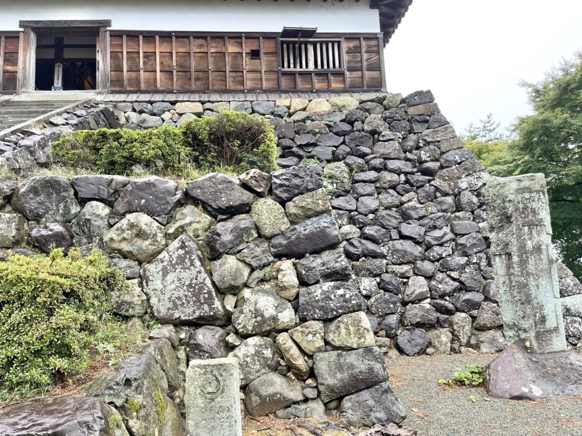 石垣があります。少し石が小粒で丸い印象がありますね。