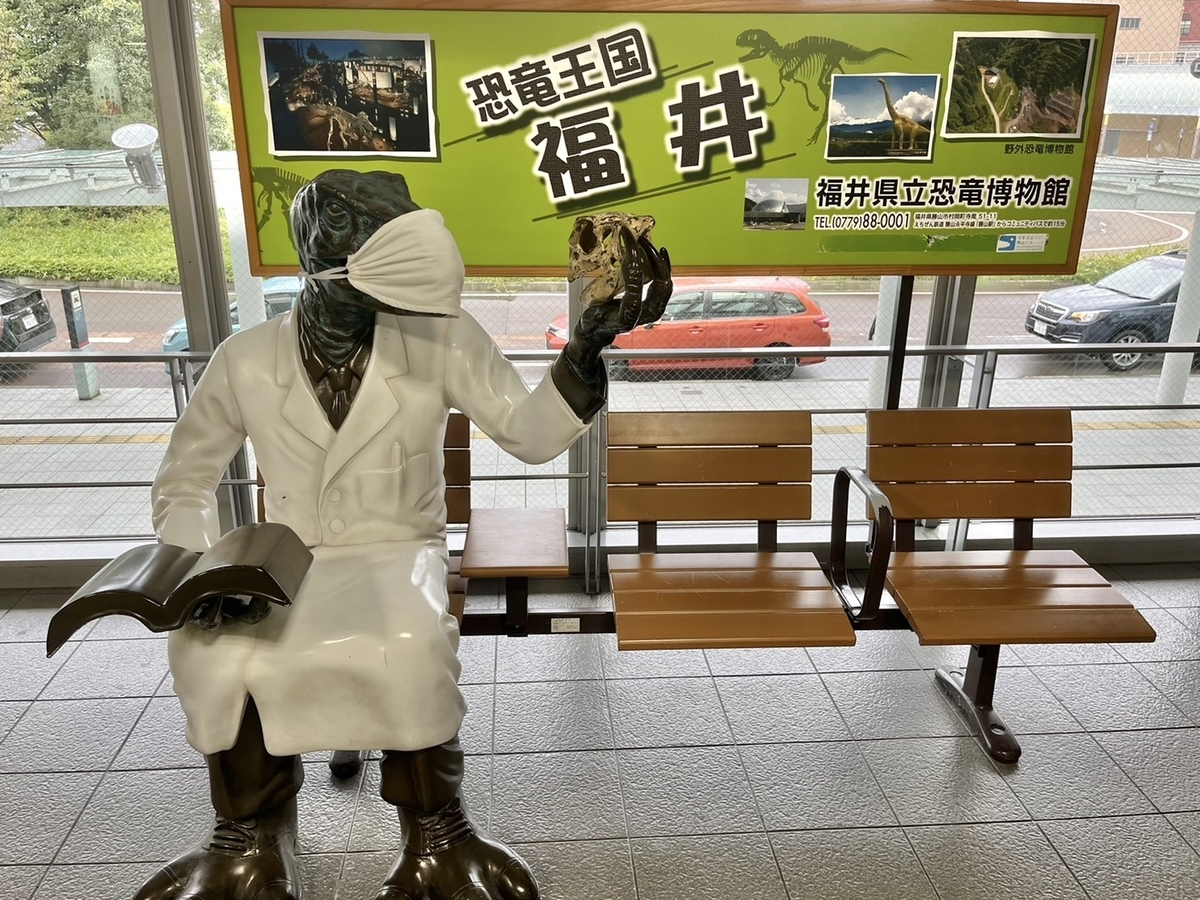 ここにも白衣の恐竜がいました。福井駅で2体居て、今日3体目の遭遇になります。